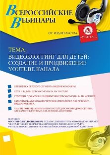 Вебинар Видеоблогинг для детей: создание и продвижение YouTube канала