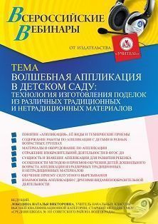 Вебинар Волшебная аппликация в детском саду: технология изготовления поделок из различных традиционных и нетрадиционных материалов