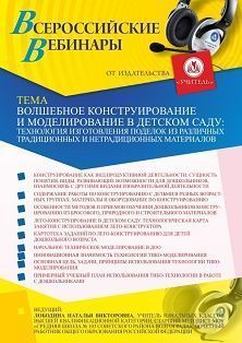 Вебинар Волшебное конструирование и моделирование в детском саду: технология изготовления поделок из различных традиционных и нетрадиционных материалов