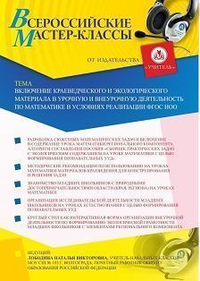 Всероссийский мастер-класс Включение краеведческого и экологического материала в урочную и внеурочную деятельность по математике в условиях реализации ФГОС НОО